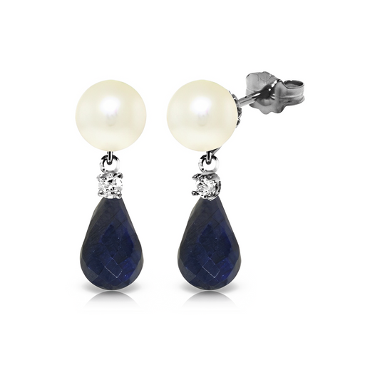 Stud Earrings w/ Diamonds, Sapphire & Pearl